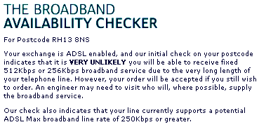 There is much talk about the Carter report on provision of broadband with 2 Mbps minimum speed to all by 2012.. Normal telephone line broadband ADSL methods mean people all get different speeds regardless of paying for "up to 8 Mbps".. ALL customers using the Kijoma broadband wireless system get in excess of 2 Mbps , regardless of geography and therefore we meet the objectives of the report. If you feel the need to raise your voice to air your view about broadband provision then don't forget to mention Kijoma.. Thanks..